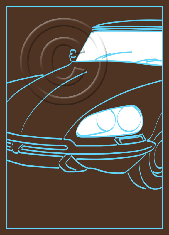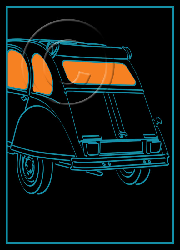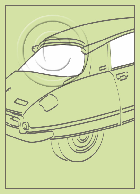 "Illuminatroëns"are very large (A3) calligraphic (broad nib) drawings of classic Citroëns which seem to be travelling past your window at dusk (or later). We all know that you don't normally drive with the interior light switched on - but then it happens in the movies all the time, doesn't it ? Perhaps they are a little more mysterious because you can't see the driver. In fact - IS there a driver ? Or are these wonderfully evocative machines actually conducting themselves ?