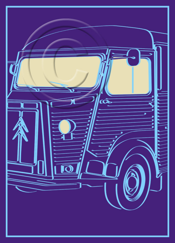 Remember that any of these drawings can be printed in (almost) any colour combination which you think will work. And they're also available WITHOUT the illuminated windows and headlamps for a more subtle garment design ("LightsOutroëns"?)
